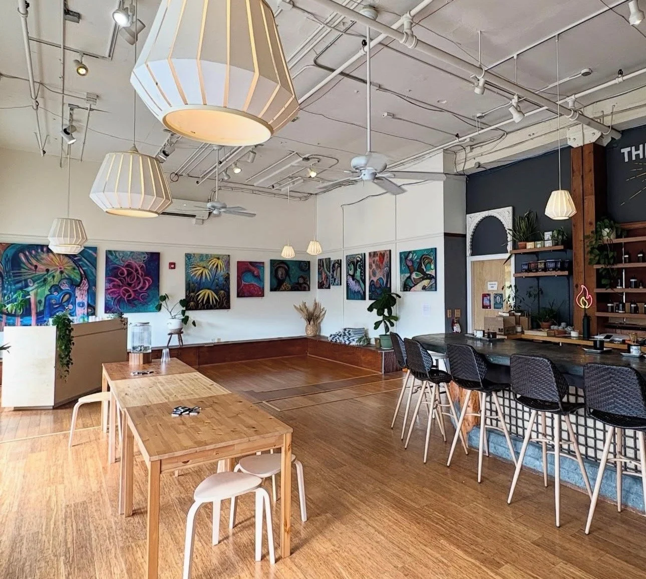 You’ll move with intention in a beautiful open space filled with natural light and artwork by local artists.